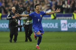 体育资讯3月30日讯 国际足球友谊赛,法国和哥伦比亚交手。本场比赛,巴黎圣日耳曼前锋杜埃为法国首开纪录,打进个人国家队生涯处子球。