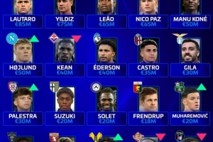 德转意甲各队身价最高球员:国米劳塔罗,尤文伊尔迪兹,米兰莱奥