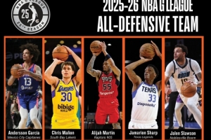 体育资讯4月8日讯 今天,G联盟官方公布了2025-26赛季的最佳防守阵容,分别是:
