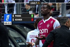 33岁博格巴时隔5个月重回赛场,至今为摩纳哥出战4场共计51分钟